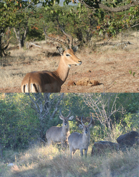 Sing sing Waterbuck, Western Hartbeest, Cob, Nogor Reedbuck, Harnessed Bushbuck, Red flank Duiker, Red river Hog, Oribi